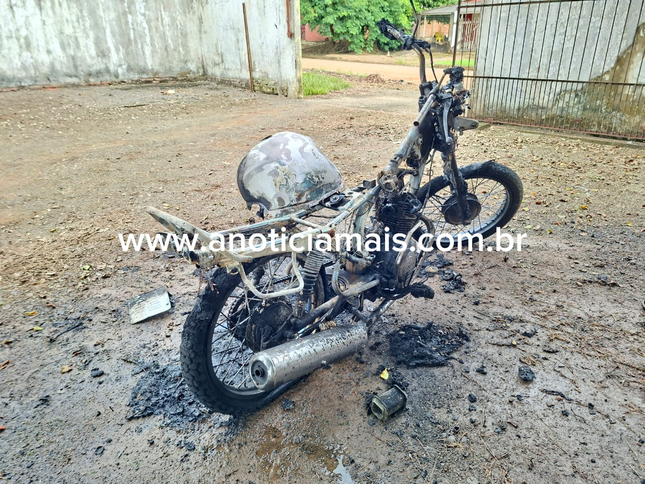 Rapidamente a moto começou a pegar fogo e ele ainda tentou apagar jogando água e pediu para uma vizinha ligar para o Corpo de Bombeiros, que chegou rapidamente, mas as chamas já haviam se espalhado por todo o veículo.