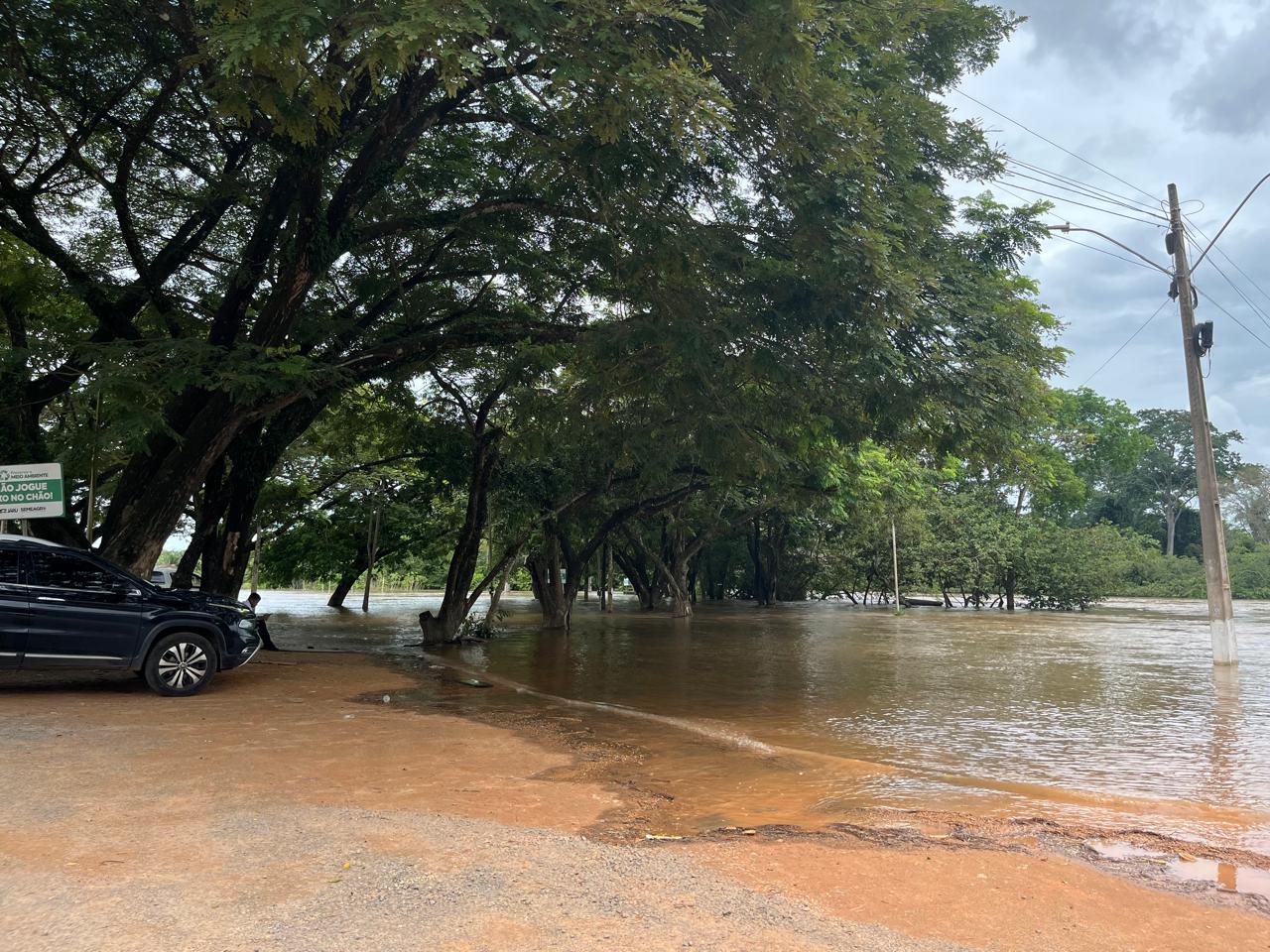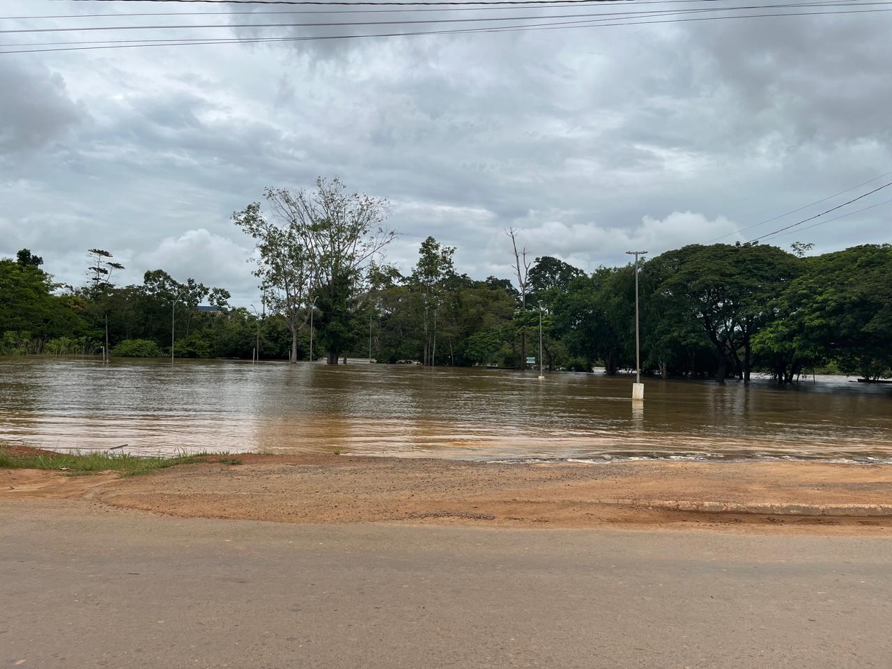 As fortes chuva que caíram nos últimos dias elevou consideravelmente os níveis do rio Mororó e Jaru, que já saiu da caixa e na manhã desta quarta-feira (25) as águas já ocupavam o Bosque Beira Rio, nas proximidades da ponte.