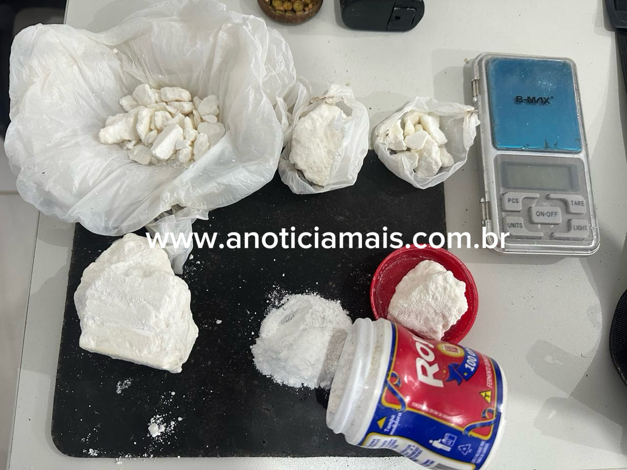 A presença da balança de precisão e das drogas levantou suspeita de tráfico de entorpecentes na região, conforme avaliação preliminar da polícia.