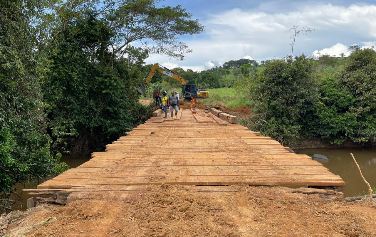 A antiga construção da ponte havia sido danificada completamente por conta do volume de água da chuva na região.