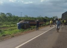 Vários motoristas pararam no local, onde o motorista do rodotrem, que tombou às margens da rodovia, foi resgatado pelo Corpo de Bombeiros e levado para um hospital da cidade de Pimenta Bueno.