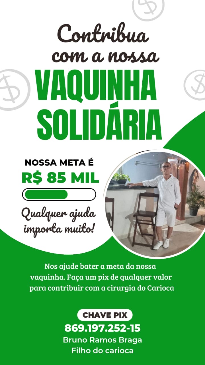 A chave do Pix do filho dele caso alguém queira ajudar e fazer uma transferência bancária é: 86919725215, em nome de Bruno Ramos Braga.