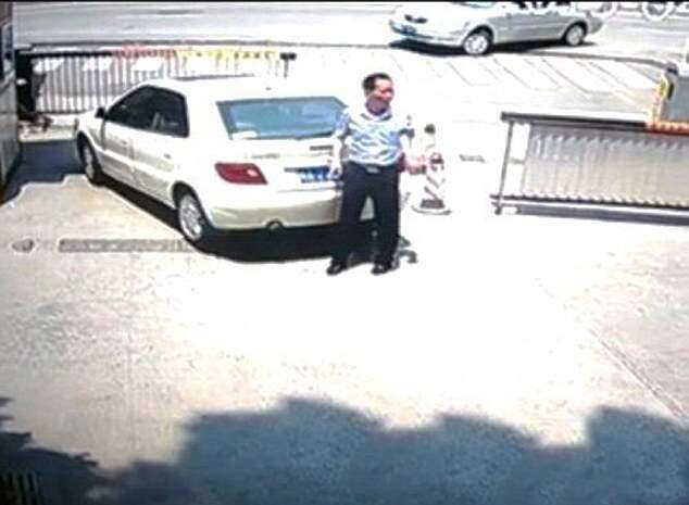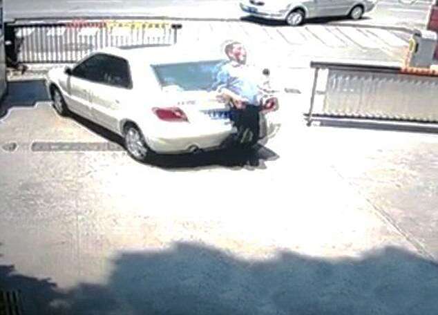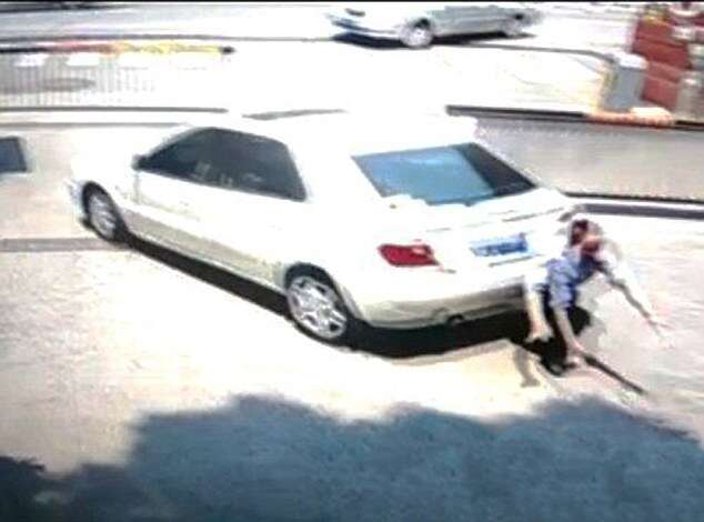 Câmeras de vigilância mostraram o momento em que Ming saiu da porta do passageiro e ficou de pé atrás do carro, quando sua esposa de repente deu ré, o derrubando e passando sobre seu corpo.