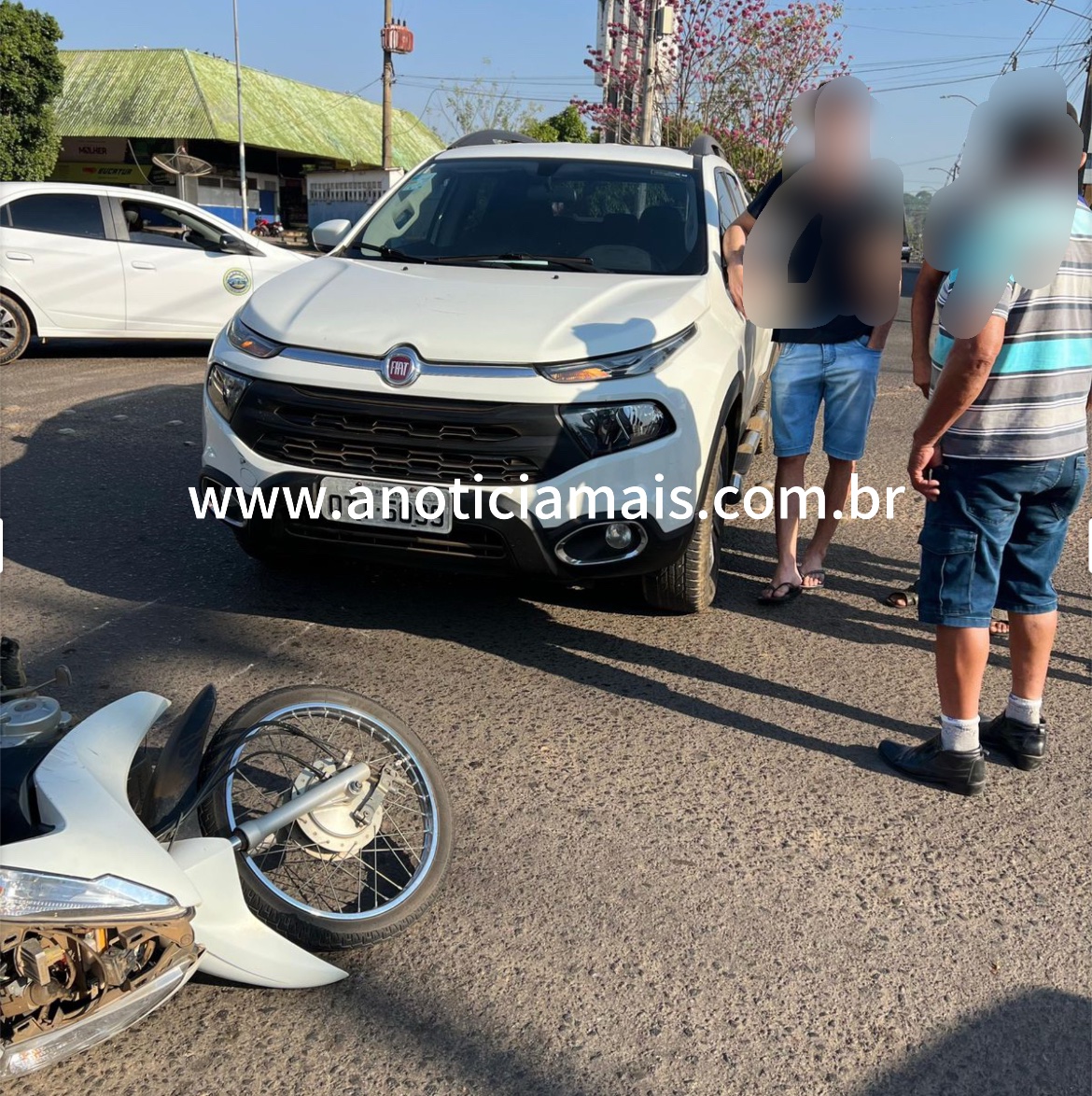 Segundo informações, uma motoneta Honda Biz seguia pela Dom Pedro, sentido rio Mororó, quando foi atingida por uma caminhonete Fiat Toro que trafegava pela Rio Branco, no sentido rio Jaru.