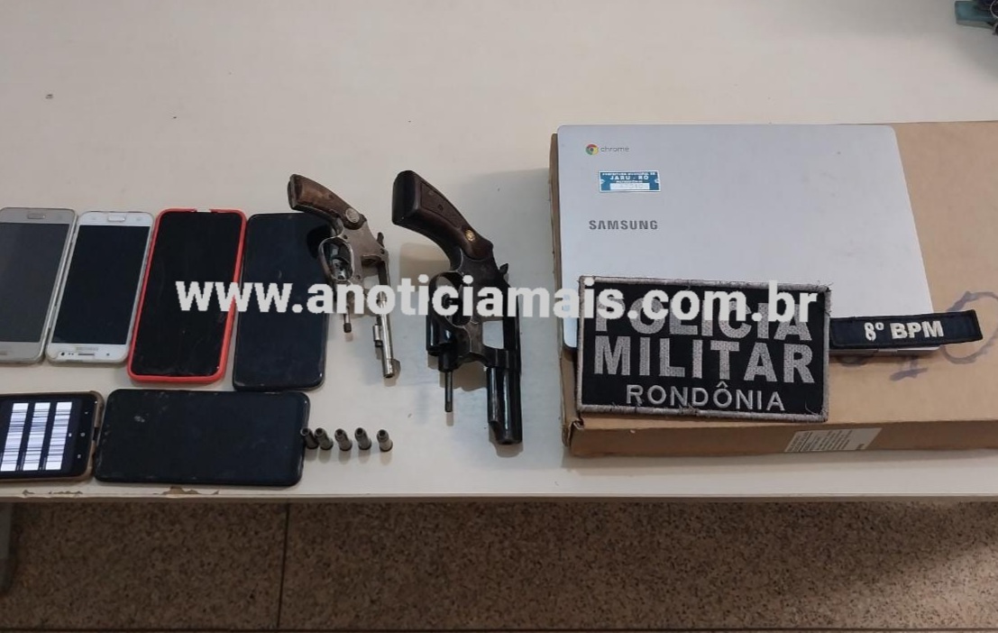 JARU – PM conduz mulher e três menores de 13, 15 e 16 anos com moto e armas furtadas