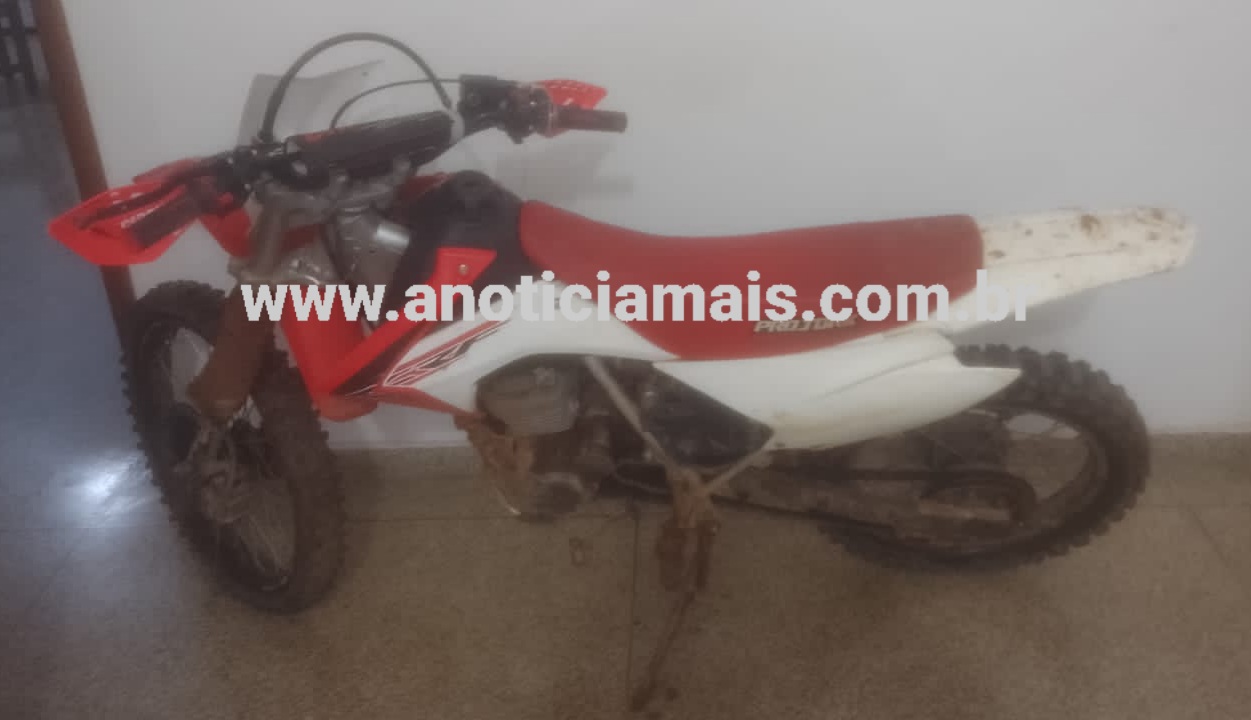 Durante as buscas nas proximidades, a guarnição encontrou a referida motocicleta, da marca Honda, modelo CRF, abandonado em um terreno baldio, escondida no mato.