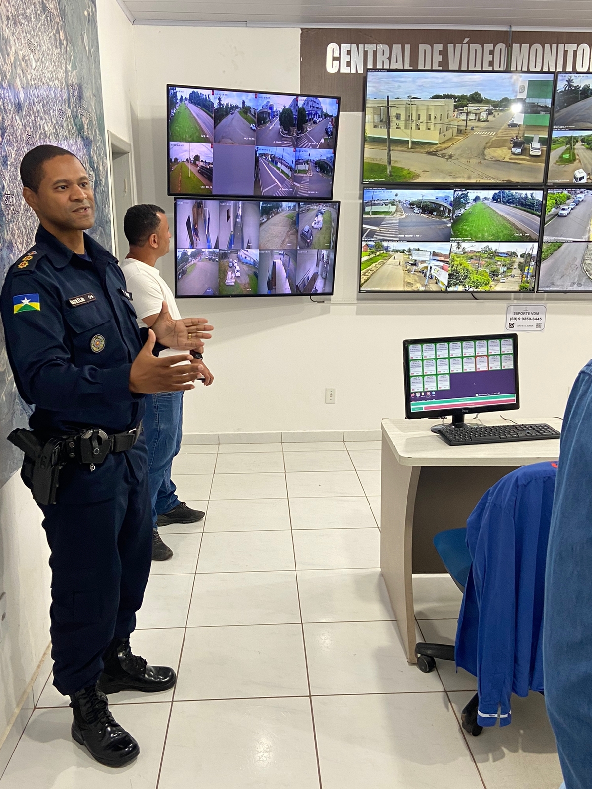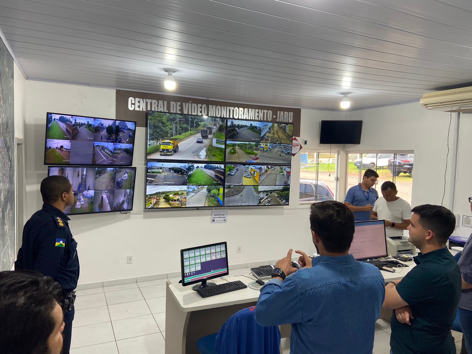 Na manhã desta terça-feira (24), o presidente da Associação Comercial e Industrial de Jaru (ACIJ), Rogério Rodrigo Quiroga, e outros diretores da entidade, visitaram a central de videomonitoramento do município, que é controlada pelo 8º Batalhão da Polícia Militar. Convidados pelos diretores, ainda participaram da visita, o prefeito de Jaru, João Gonçalves Júnior e o vice-prefeito, Jeverson Lima. Eles foram recebidos pelo comandante da PM, Coronel Maurílio Miranda.