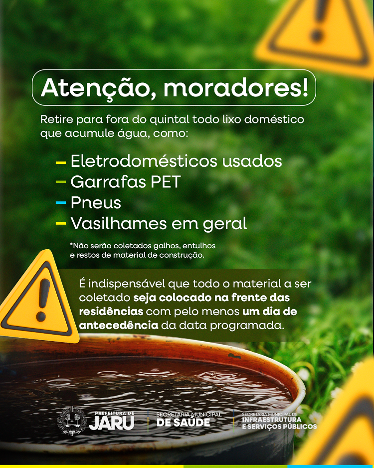 Segundo a secretária de saúde, Jaíne Barboza, a medida integra o cronograma de atividades de controle e combate ao mosquito. Ela reforça ainda a importância da participação da comunidade no enfrentamento às doenças transmitidas pelo Aedes. “Para garantir maior eficácia na ação, é indispensável que os moradores coloquem todo o material a ser coletado na frente das residências com pelo menos um dia de antecedência da data prevista da ação programada para cada bairro”, disse.