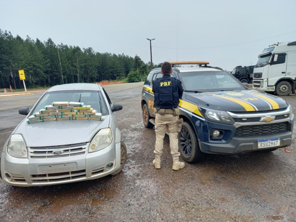 A Polícia Rodoviária Federal (PRF) em Rondônia, na manhã desta quinta-feira (31), realizando atividade de enfrentamento ao tráfico de drogas em região de fronteira na BR-174, próximo ao Km 50, no município de Vilhena, interceptou um carregamento de cloridrato de cocaína sendo transportado por um homem que viajava em um veículo Ford, modelo Ka.